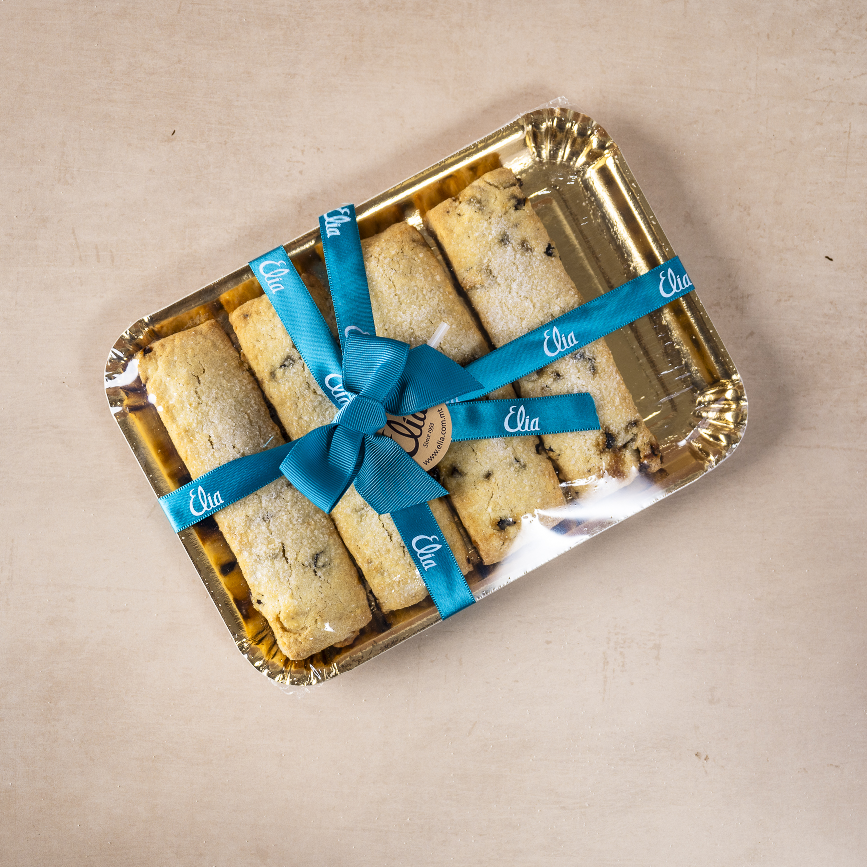 shortbread pastry dotted with black currants
