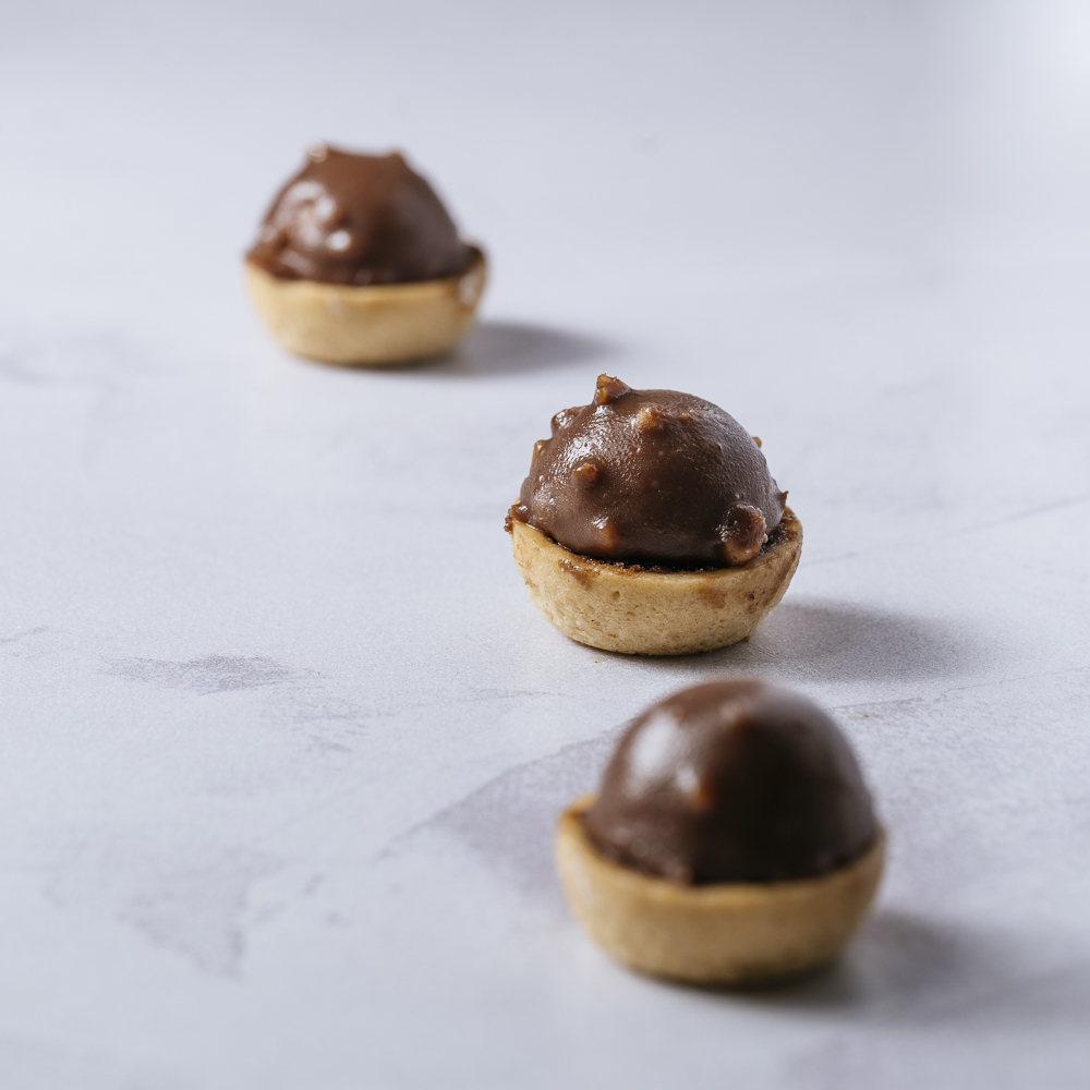 Party sized sweet tartlets filled with a milk chocolate and nut dome with a crisp interior and delicious nutty flavour profile.